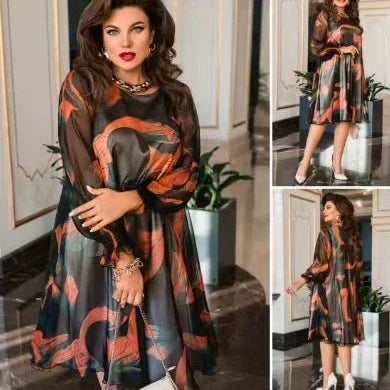 IĂGONFALLANDE TRYCKT MĂNSTER: Det vackra, livfulla trycket ger klĂ€nningen en djĂ€rv och elegant touch som förhöjer helhetsintrycket och gör den perfekt för modeintresserade kvinnor.